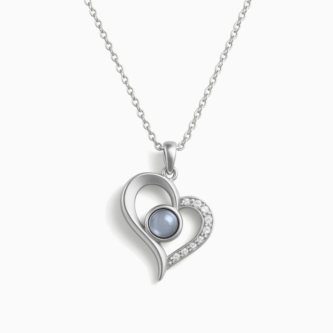 Tento náhrdelník ve tvaru srdce ti umožňuje nosit s sebou speciální fotografii promítnutou ve svém středu, jedinečný detail, který promění každý okamžik v něco magického a osobního.