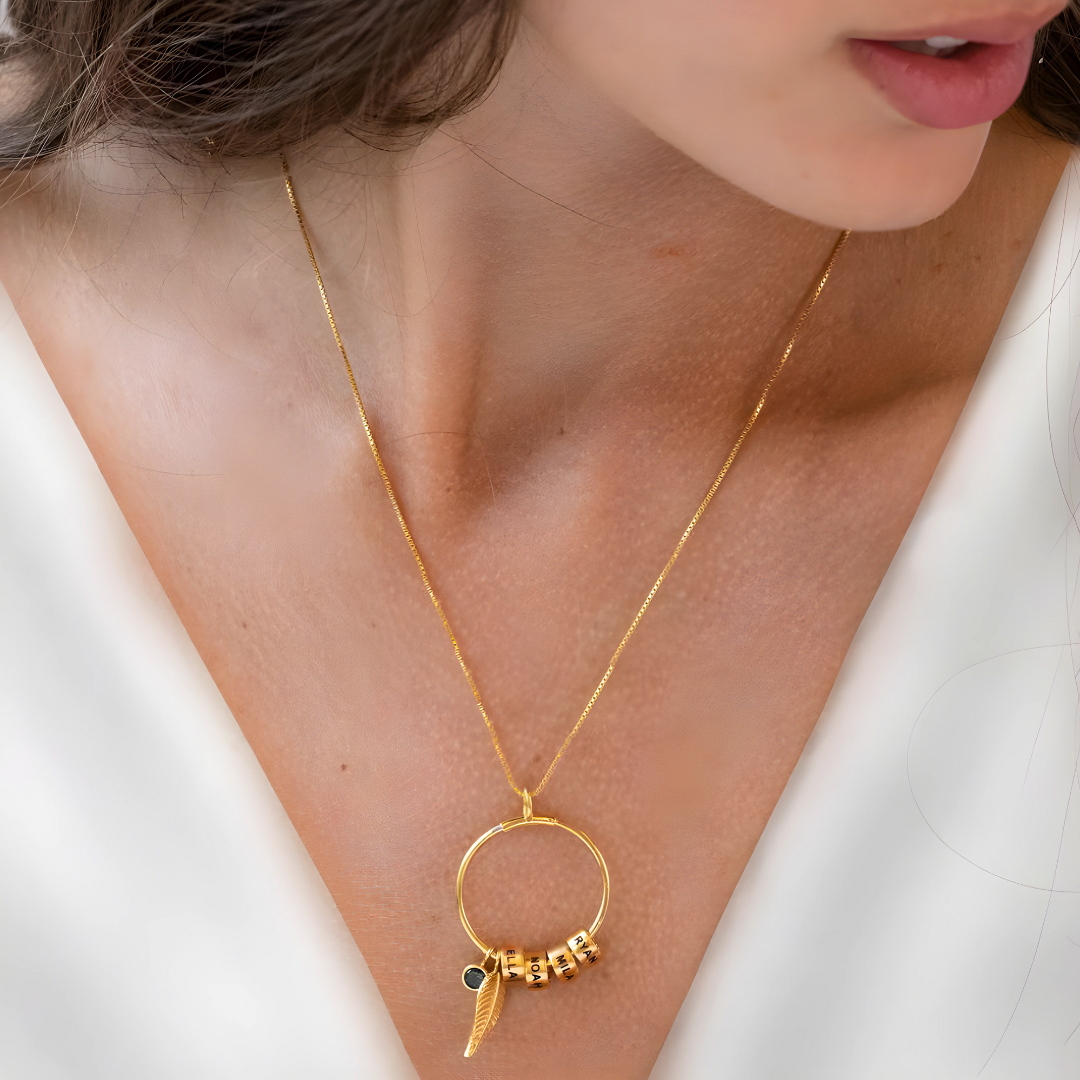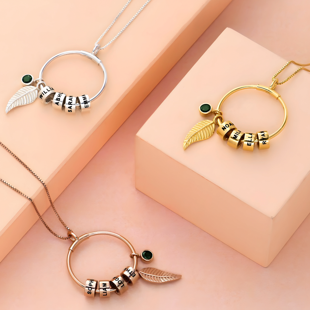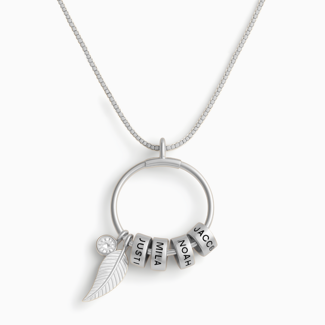 Nosi tento náhrdelník blízko svého srdce. Každé jméno uchovává vzpomínku a šeptání, které říká „myslím na tebe“.