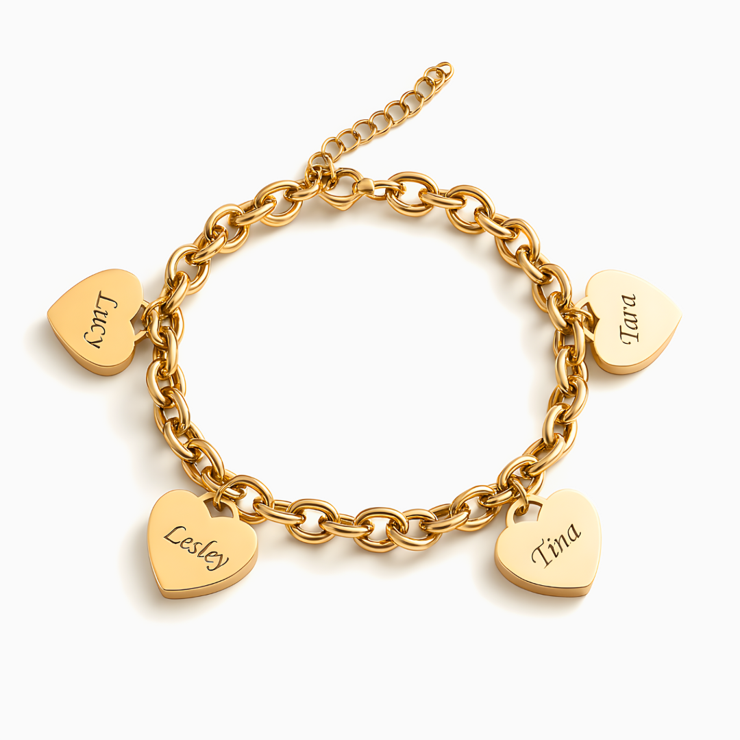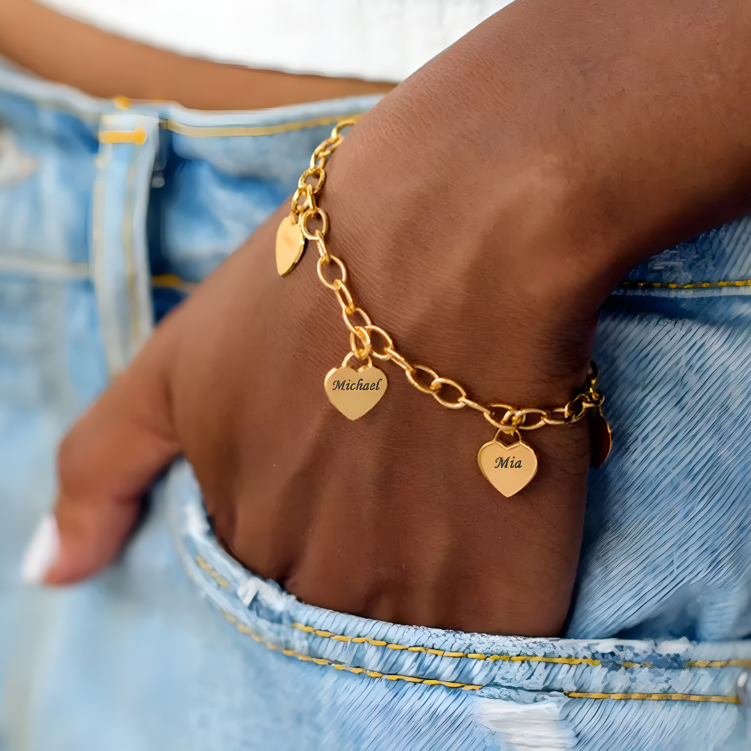 Náramek srdcí - Personalizovatelný až pro 6 srdcí