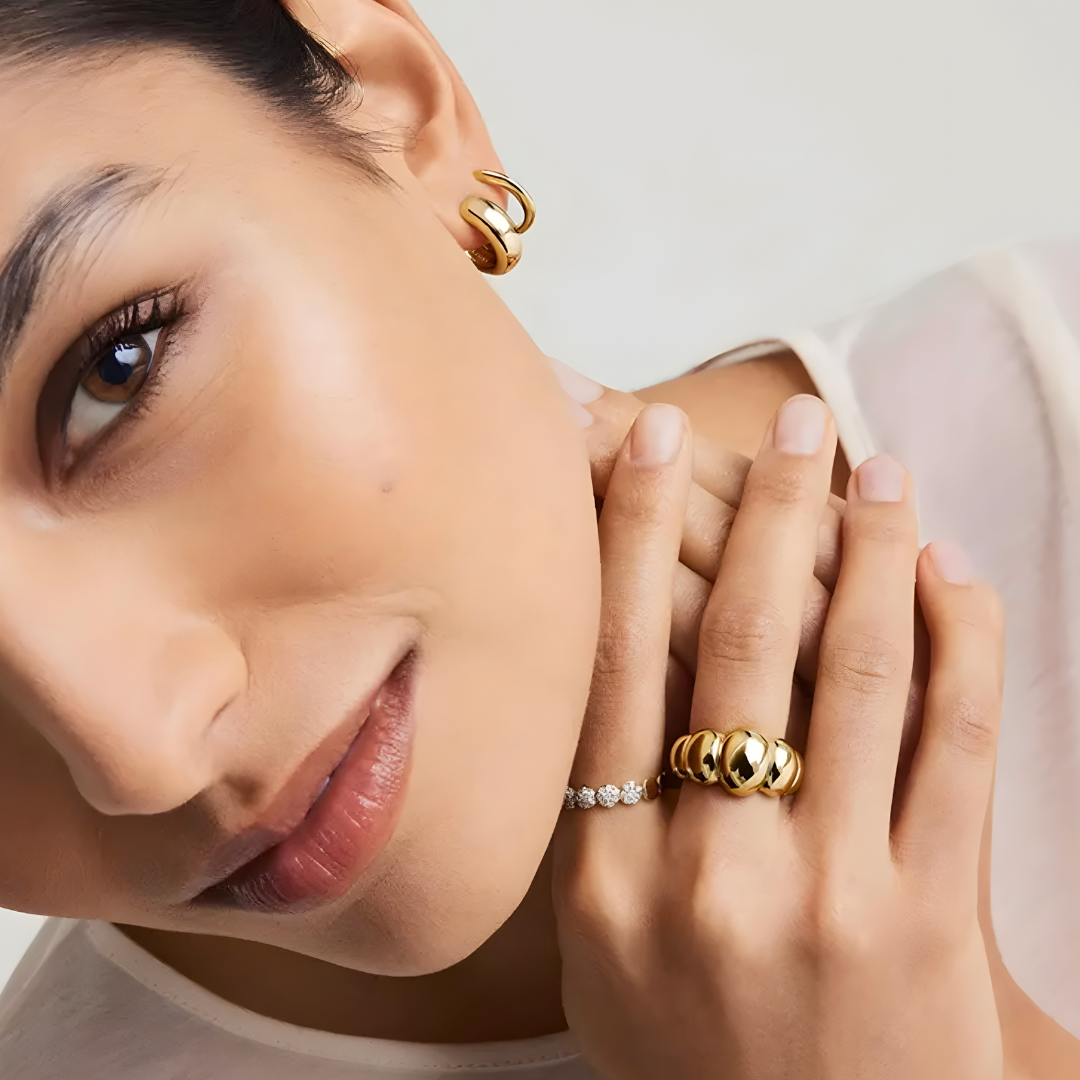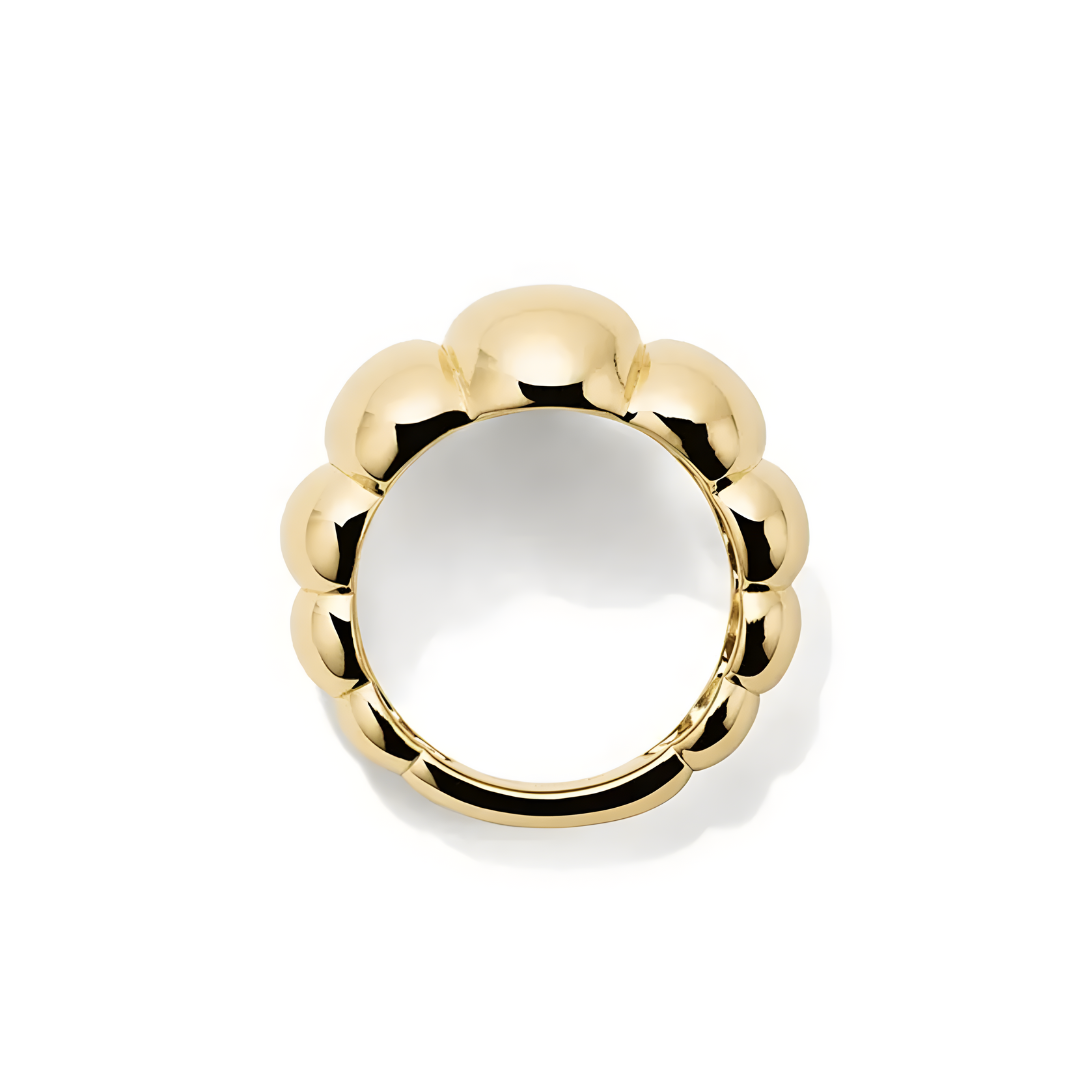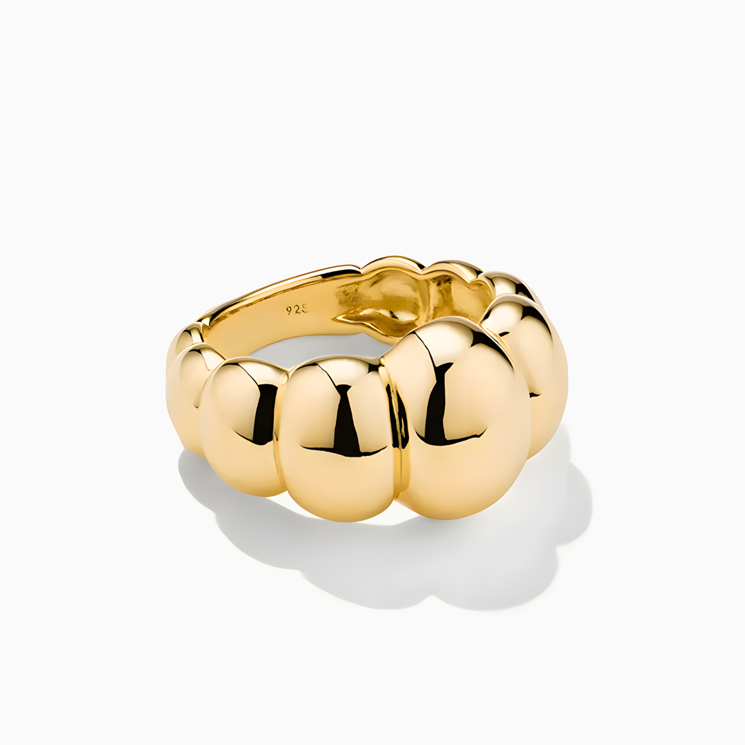 Prsten Aura vyniká svým objemným a sofistikovaným designem, odrážejícím světlo a charakter z každého úhlu. Jeho jemný a harmonický tvar ho činí univerzálním kouskem, ideálním pro doplnění jakéhokoli stylu s nádechem moderní elegance.